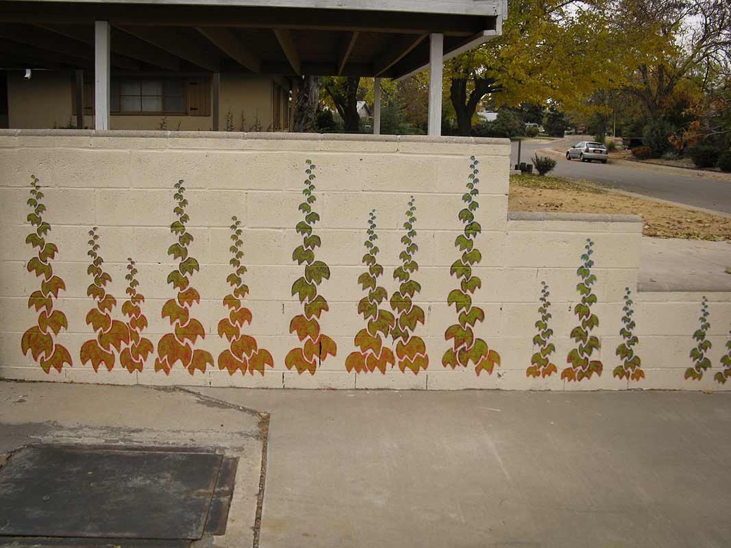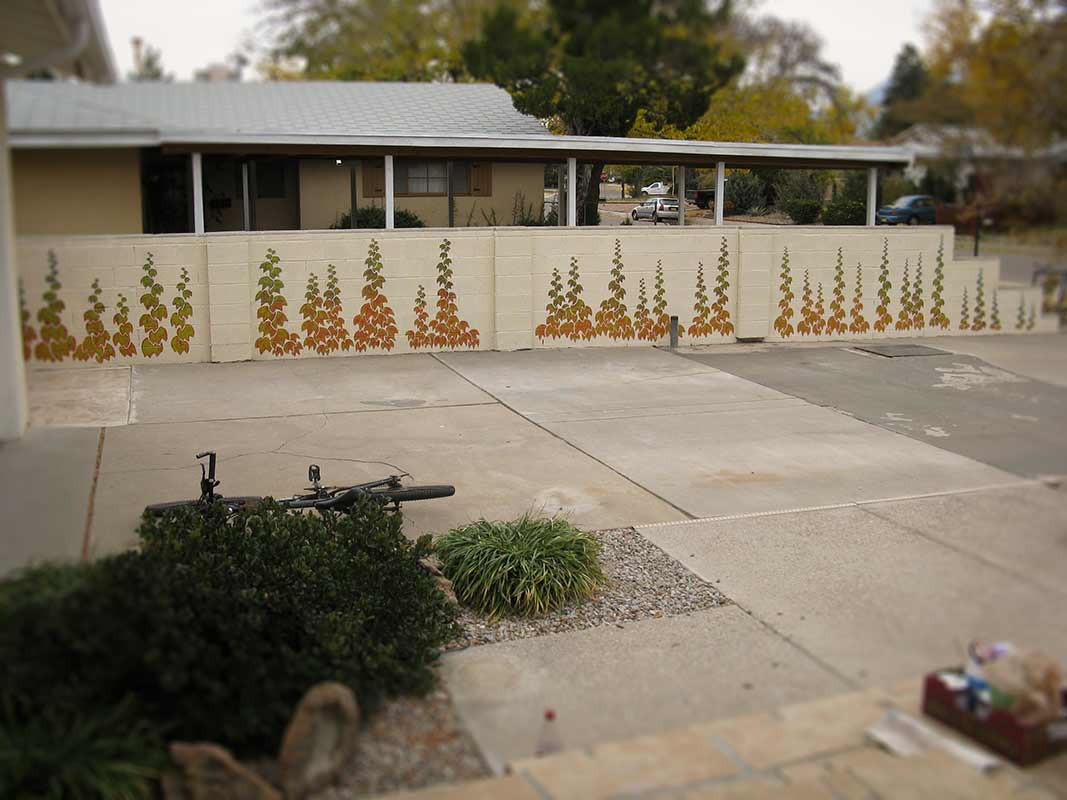 House paint on outdoor concrete wall, Nancy and Kevin Hawk, Albuquerque, NM